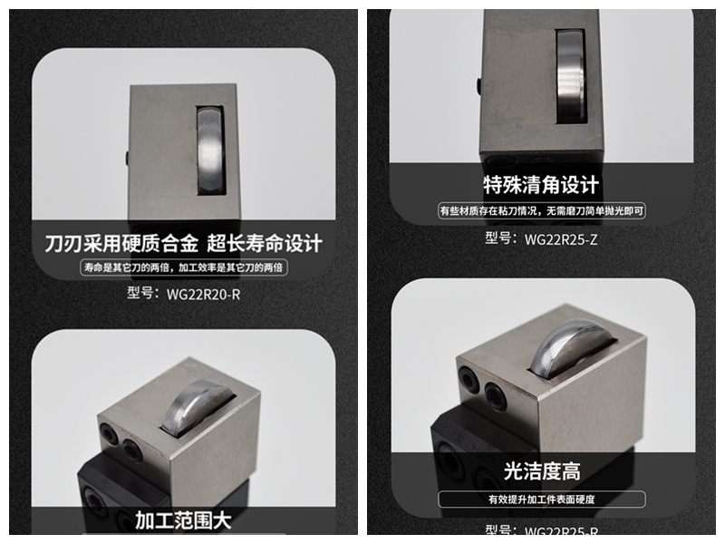 本工具適合Φ5以上的光軸光桿外圓,工具的通用性強(qiáng),使用壽命長,加工方便。刀具有正,反兩種結(jié)構(gòu),可根據(jù)滾壓工件直徑的大小選擇合適的滾輪直徑,可加工出最佳的鏡面效果。